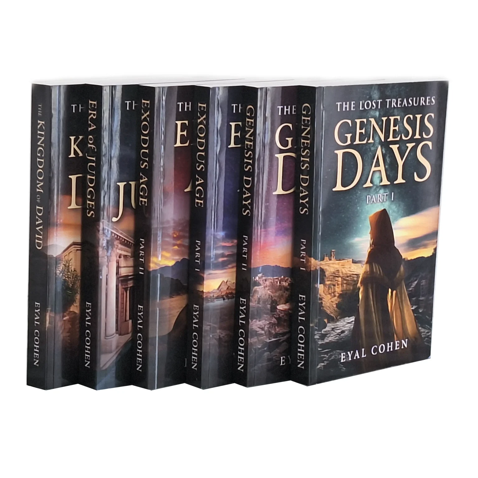כל הספרים שתורגמו עד כה מסדרת "האוצרות האבודים": ימי בראשית: Genesis Days part 2 + Genesis Days part 1 דור המדבר: Exodus Age part 2 + Exodus Age part 1 ימי השופטים: Era of Judges המלך דוד: The Kingdom of David